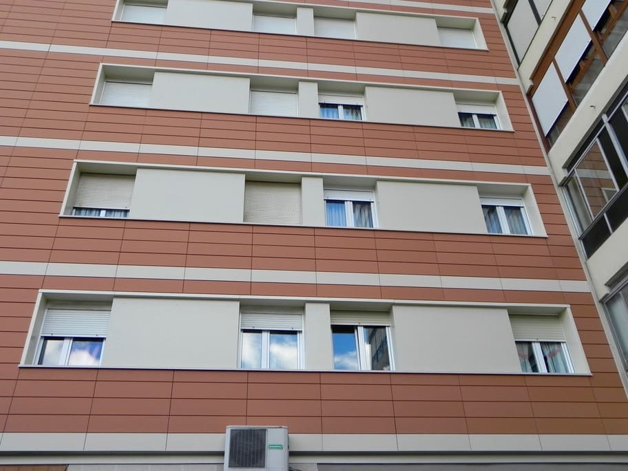 Este edificio situado en la calle La Paz nº 32 del barrio de Cruces (Bilbao) tiene la particularidad de ser un edificio de 11 plantas de altura muy expuesto, bajo un calculo de ingeniería se realizo la subestructura oportuna, y se fabrico una terracota especifica para la obra de una altura concreta y unos colores que simulaban el edifico antiguo, se realizo a su vez el forrado de miradores, y los entre-paños de ventanas con composite, teniendo como resultado el siguiente edificio.